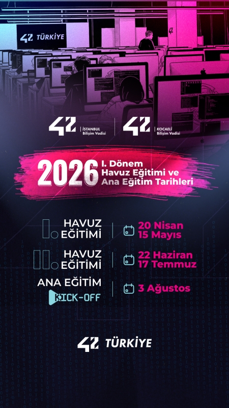 Bakanlığımız himayelerinde ve Bilişim Vadisi yürütücülüğünde faaliyet gösteren 42 Türkiye; yazılım alanında nitelikli insan kaynağının yetiştirilmesine katkı sağlamak amacıyla ücretsiz ve yenilikçi bir eğitim modeli sunmaktadır. Proje tabanlı ve akran öğrenimine dayalı eğitim yaklaşımıyla yürütülen program, Milli Teknoloji Hamlesi hedefleri doğrultusunda ülkemizin yazılım geliştirme ihtiyacının karşılanmasına katkı sağlamayı amaçlamaktadır.